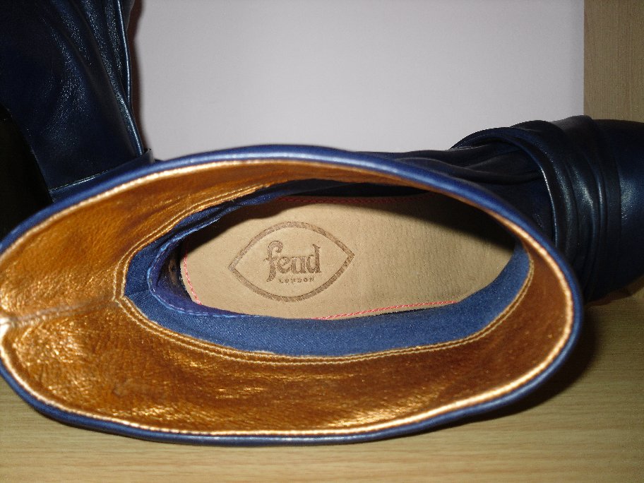 Pop over to The Shoe Girl Diaries to see me wearing these Feud 'Blunt' boots today and hear the bargain price I snapped them up for! I love them, they are a beautiful indigo shade and have a concealed platform (always a winner) and this amazing curved, carved heel. They fit true to size and it's my first pair from the brand, although they have been on my radar for a while. The quality is excellent and they feel really special. My next pair absolutely must be the aqua striped 'Beetroot' slingback. I have an awful feeling that I'm going to miss out on them and have found myself checking the stock multiple times each and every day (sad I know). Anyway, I apologize for the darkness in some photos-as usual click to enlarge.